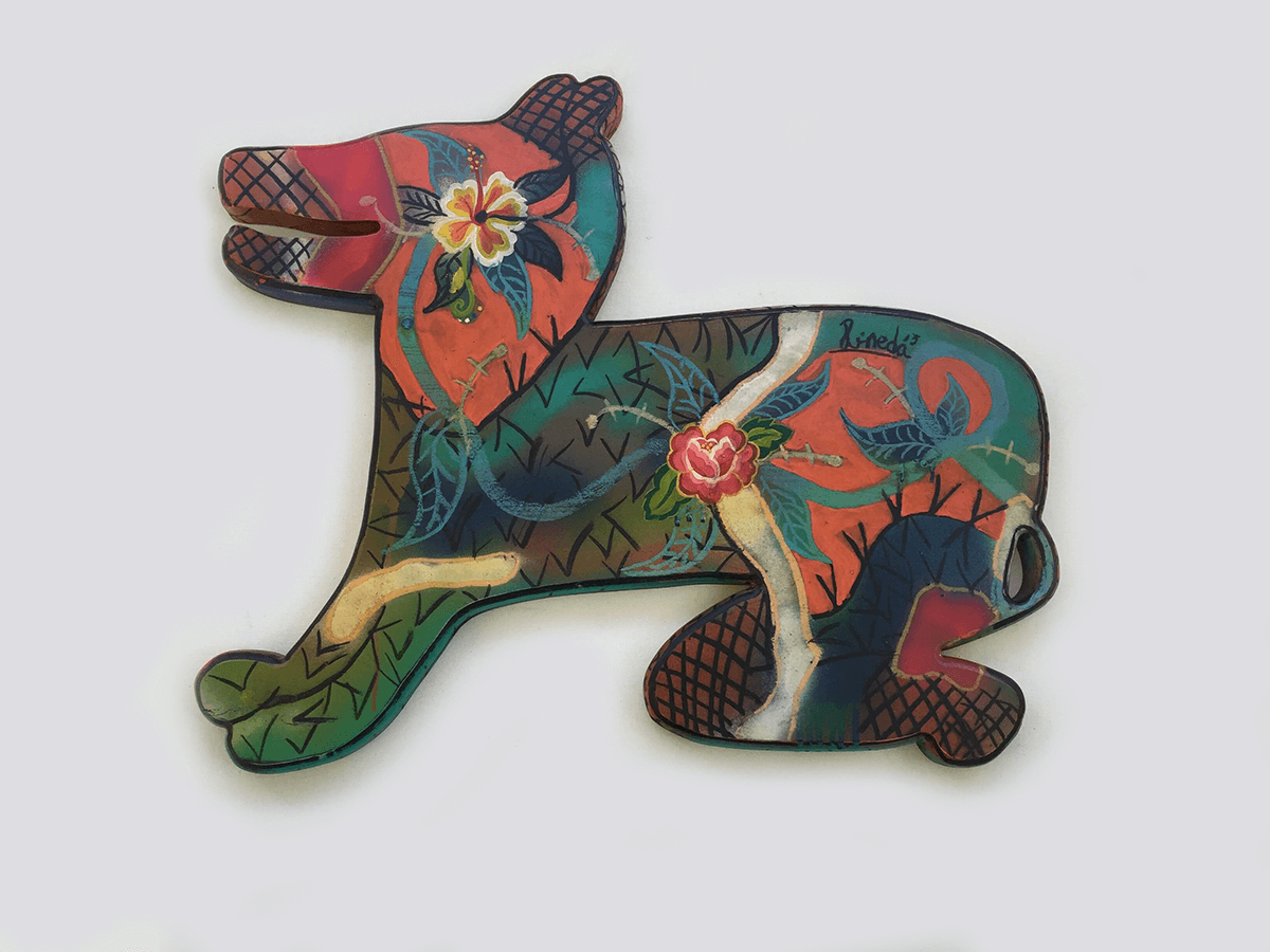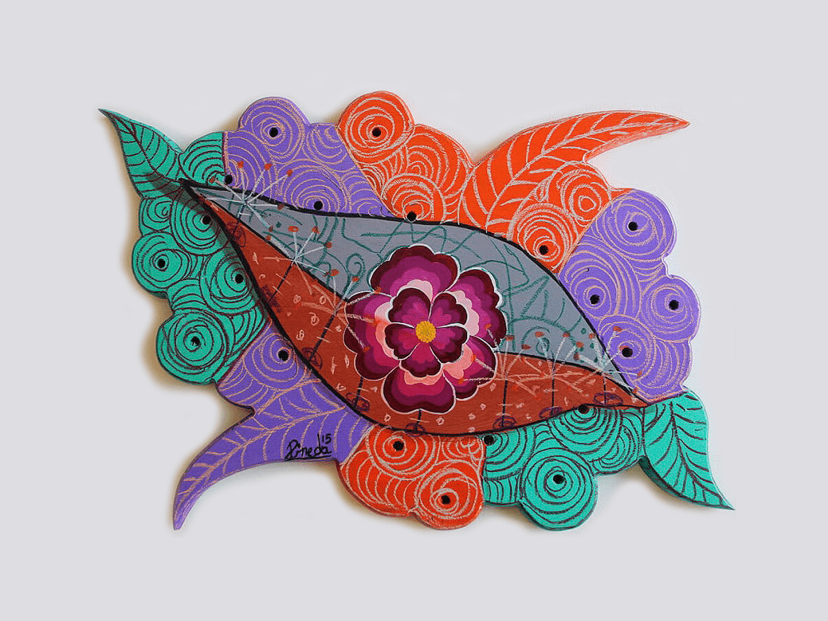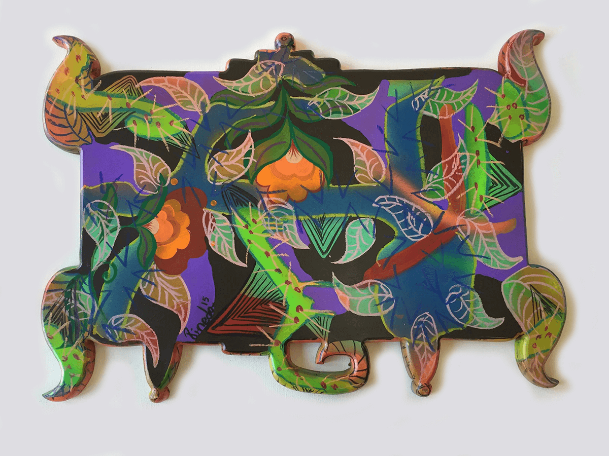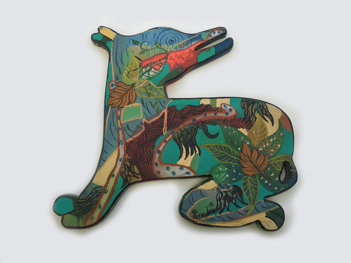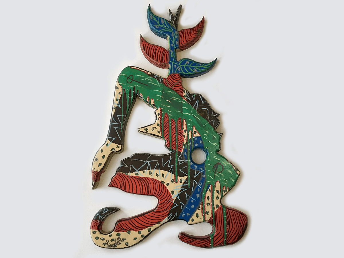 Un busto, un ojo, un volcán, una casa, éstas son unas de las tantas imágenes que se apropió el pintor en sus numerosas obras y que guían la lectura artística de su trabajo. Cristian nos explica que son “personajes recurrentes. Los tomé, los saqué de la pintura y los puse a esta superficie de pintura cortada”[1]. Éstas 400 piezas son un proyecto que ofrece un cierto parámetro de hacia dónde va el trabajo del pintor. Es como el origen, la semilla.