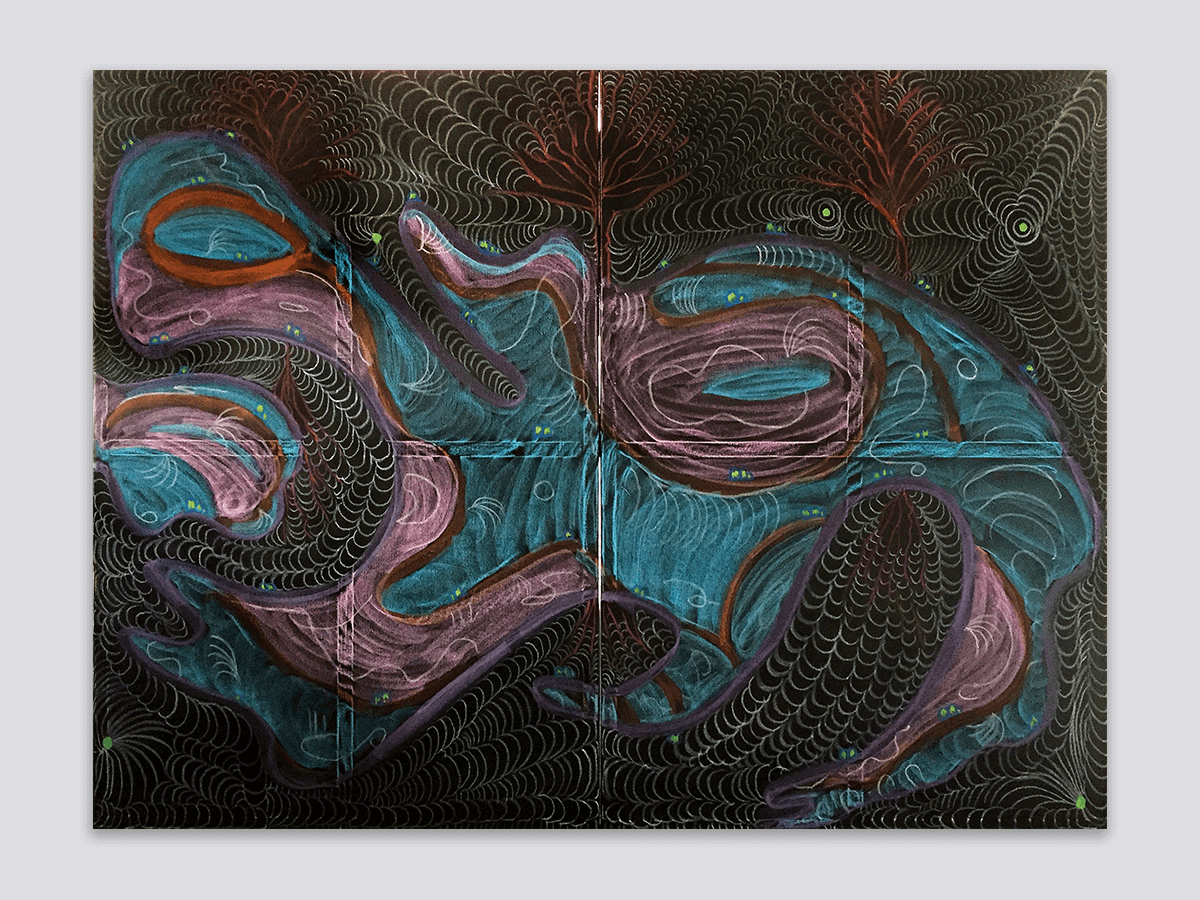 «Littoral» refers to water, but also includes aquatic vegetation, marine winds and ocean flowing. His drawings are made on black papers, referring to the nocturnal marine world, moment in which the human being sleeps, while the aquatic life remains in high activity. The series also raises the question about the possible limits of the city and its coexistence with the natural channels of water.